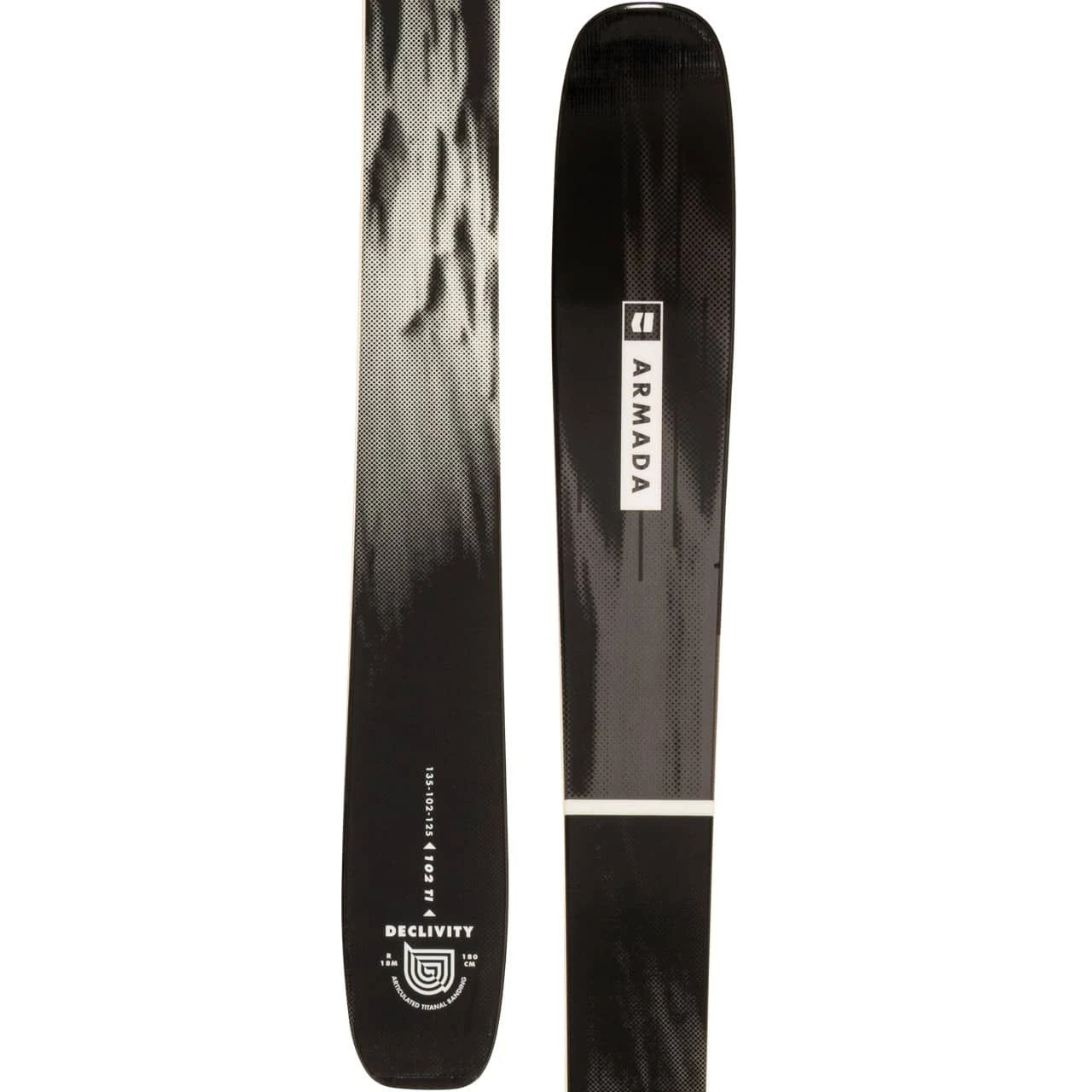 Met de meedogenloze all-mountain skiër in gedachten, heeft Armada het full-throttle karakter van de Declivity X overgebracht naar een veelzijdig ski concept voor de Declivity 102Ti, specifiek ontworpen voor veranderlijke omstandigheden. Uitgerust met een AR100 zijwand, voorgevormde titanal binding, lichtgewicht Caruba kern en triaxiale glasvezels, is het resultaat een ski die zowel ongelooflijk krachtig als perfect gedempt is en toch licht blijft. Een fijn afgestemd flexprofiel en een gemoderniseerde vorm resulteren in een prestatiegerichte all-mountain ski die zich langs de hele lijn kan handhaven zonder enige snelheidsbeperking.